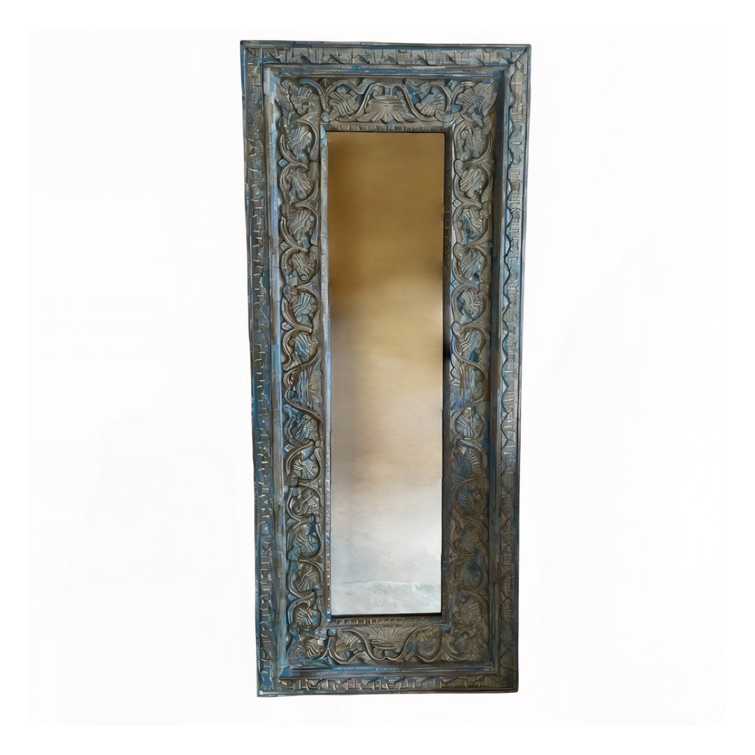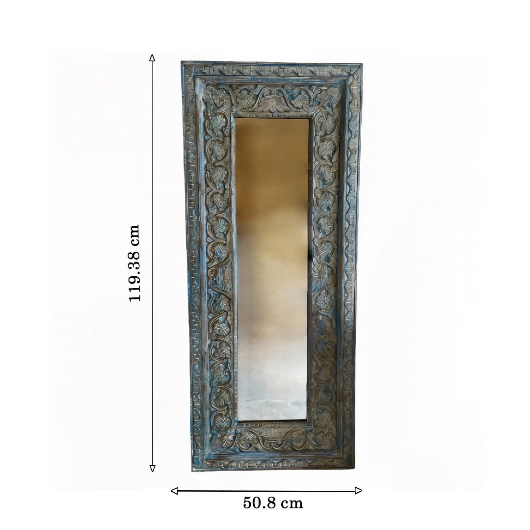 Arlette Handcrafted Solid Wood Full-Length Mirror with Vintage Blue Distressed Finish