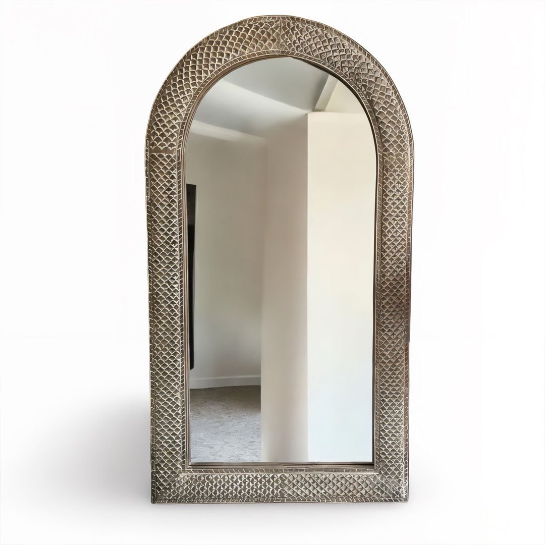 Thanks to its tall, rounded design, this mango wood arch mirror works beautifully in multiple settings. For instance, place it above a console table in the entryway, use it as a vanity mirror, or let it stand out on a statement wall. Furthermore, its neutral yet artistic tone pairs effortlessly with modern, rustic, bohemian, and transitional interiors.