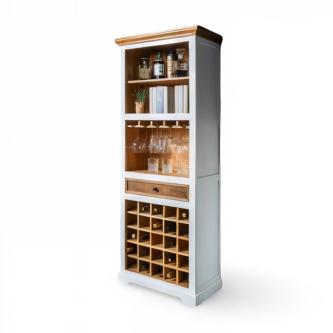 Add timeless charm to your interiors with the Barcrate White Wooden Bar Cabinet, a tall and elegant storage unit handcrafted from solid Sheesham wood by Wooden Slice. Designed for modern homes with a love for classic details, this white wooden bar cabinet offers both style and functionality.