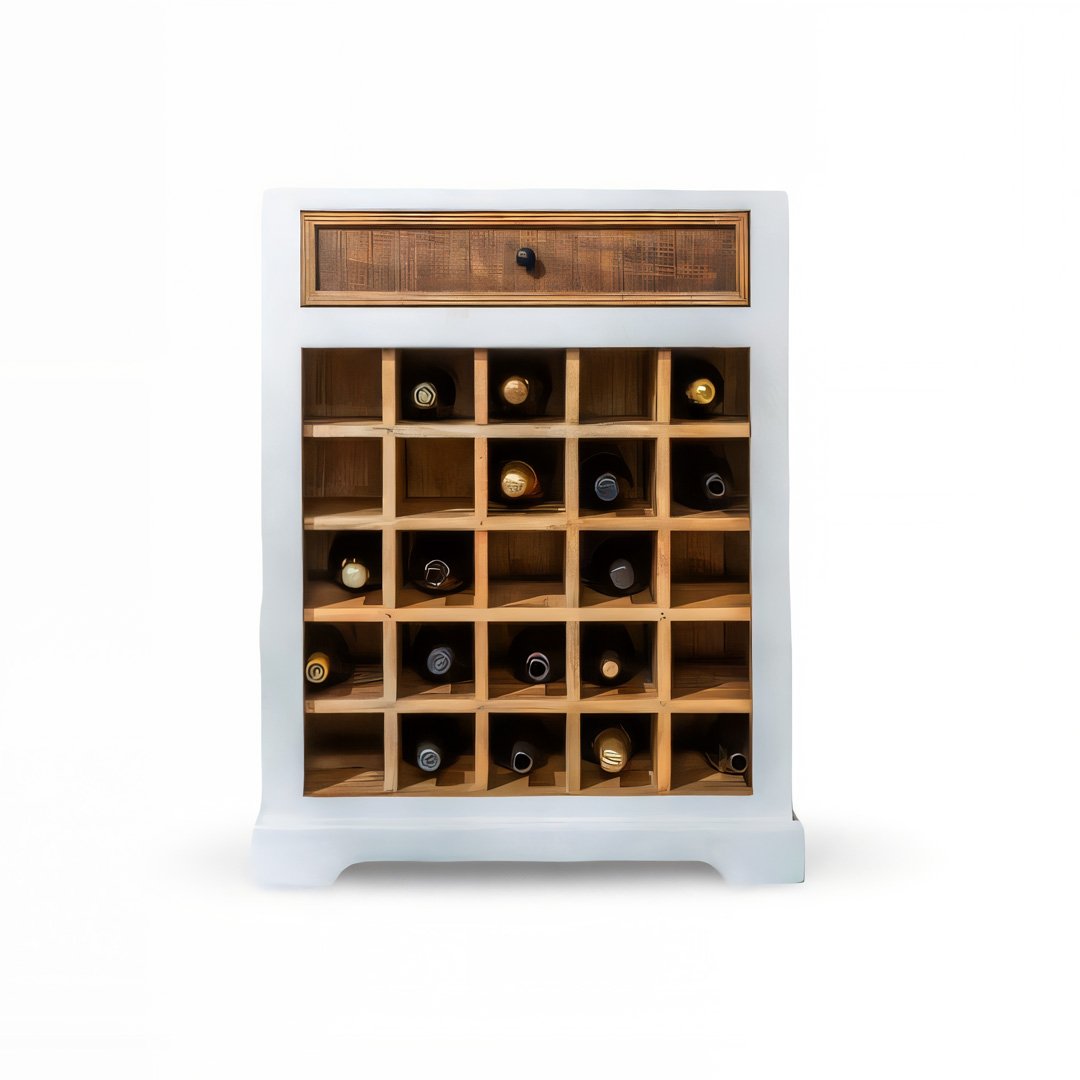 Barcrate White Wooden Bar Cabinet in Solid Sheesham Wood with Wine Storage