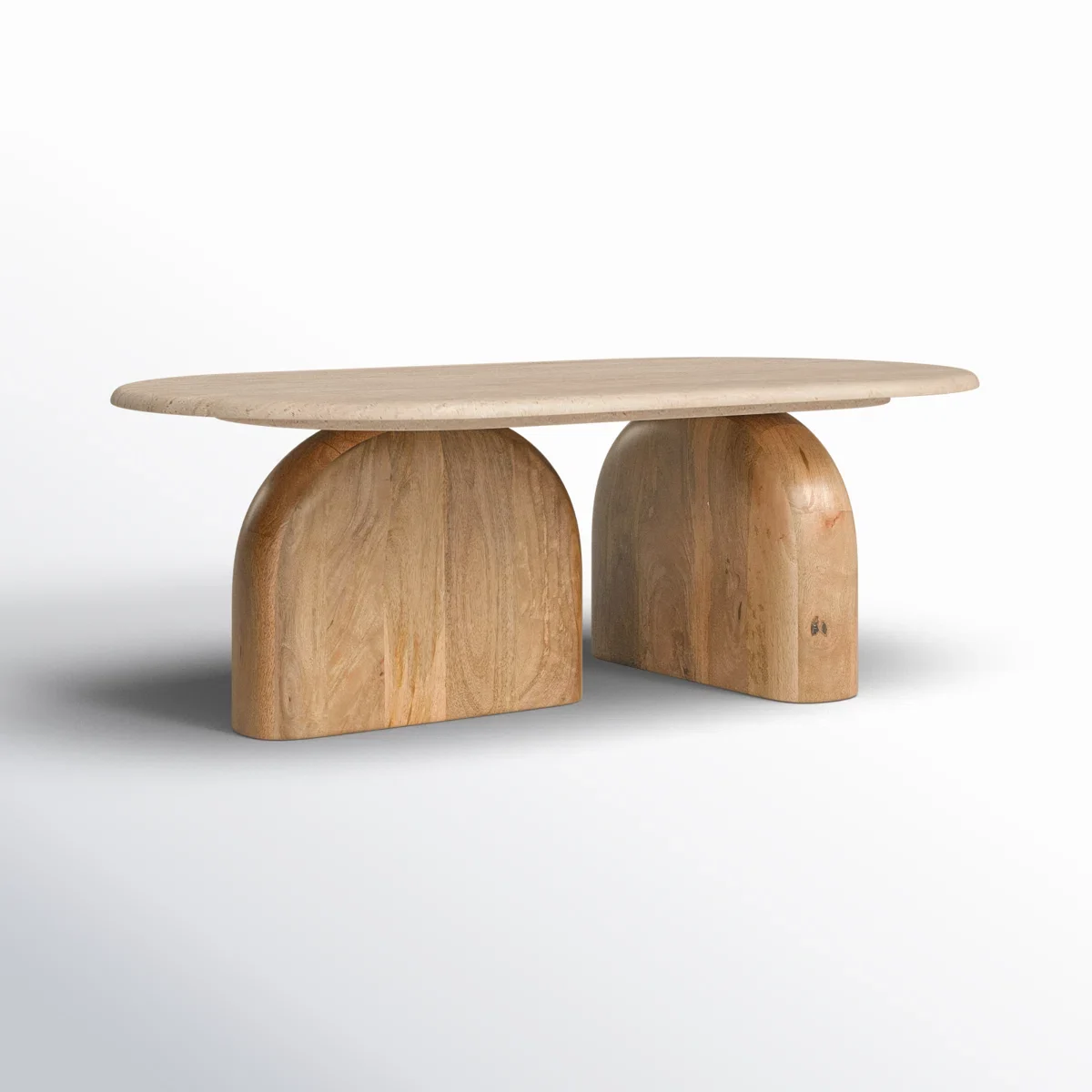 The contemporary design features a rounded tabletop supported by sculptural wooden legs, giving your sitting room a striking focal point that balances style with practicality. Its versatile structure makes it ideal for everyday use—whether you’re enjoying coffee, styling décor accents, or entertaining guests.