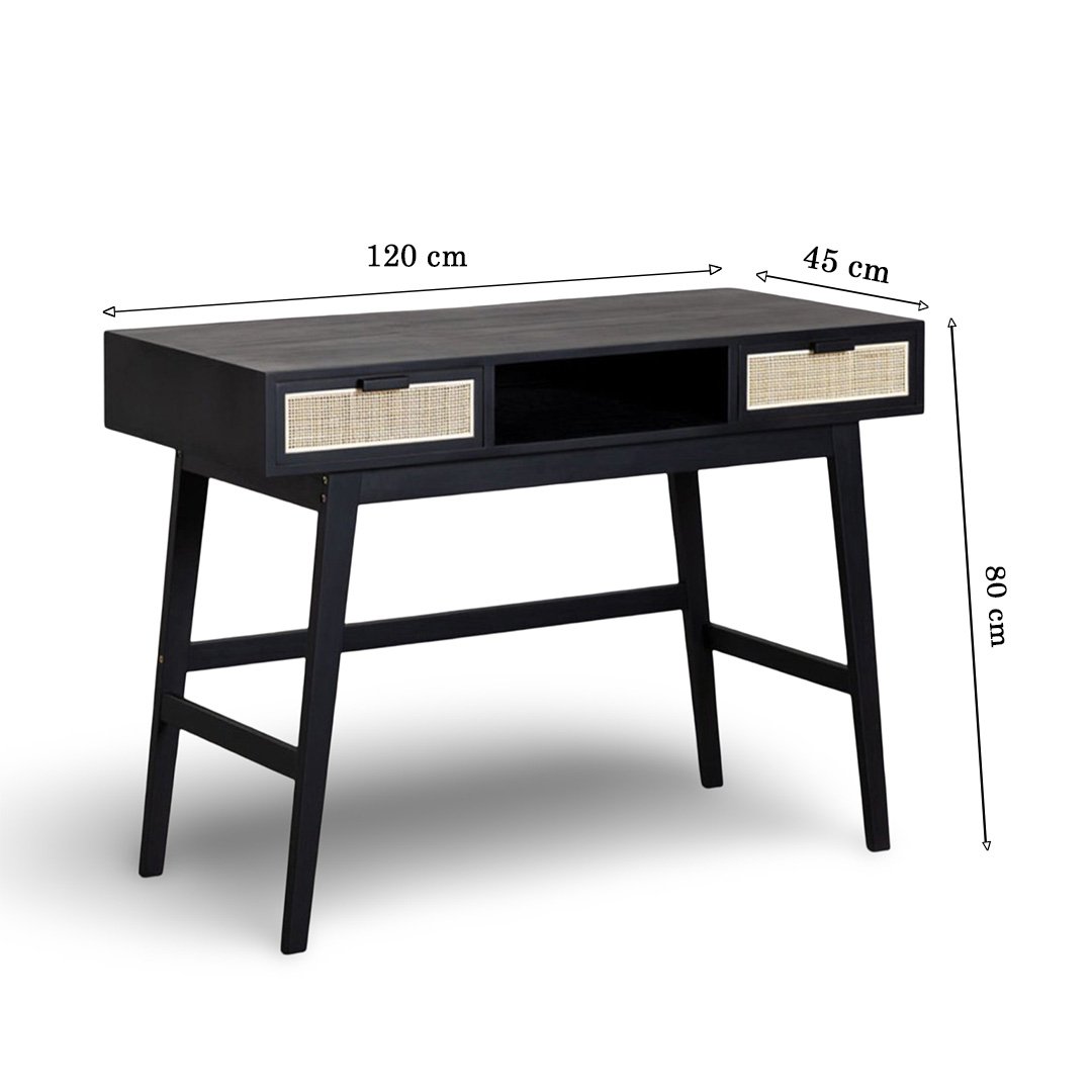 Braintree Mango Wood Study Table with Rattan Drawers | Writing Desk in Black Finish- Wooden Slice