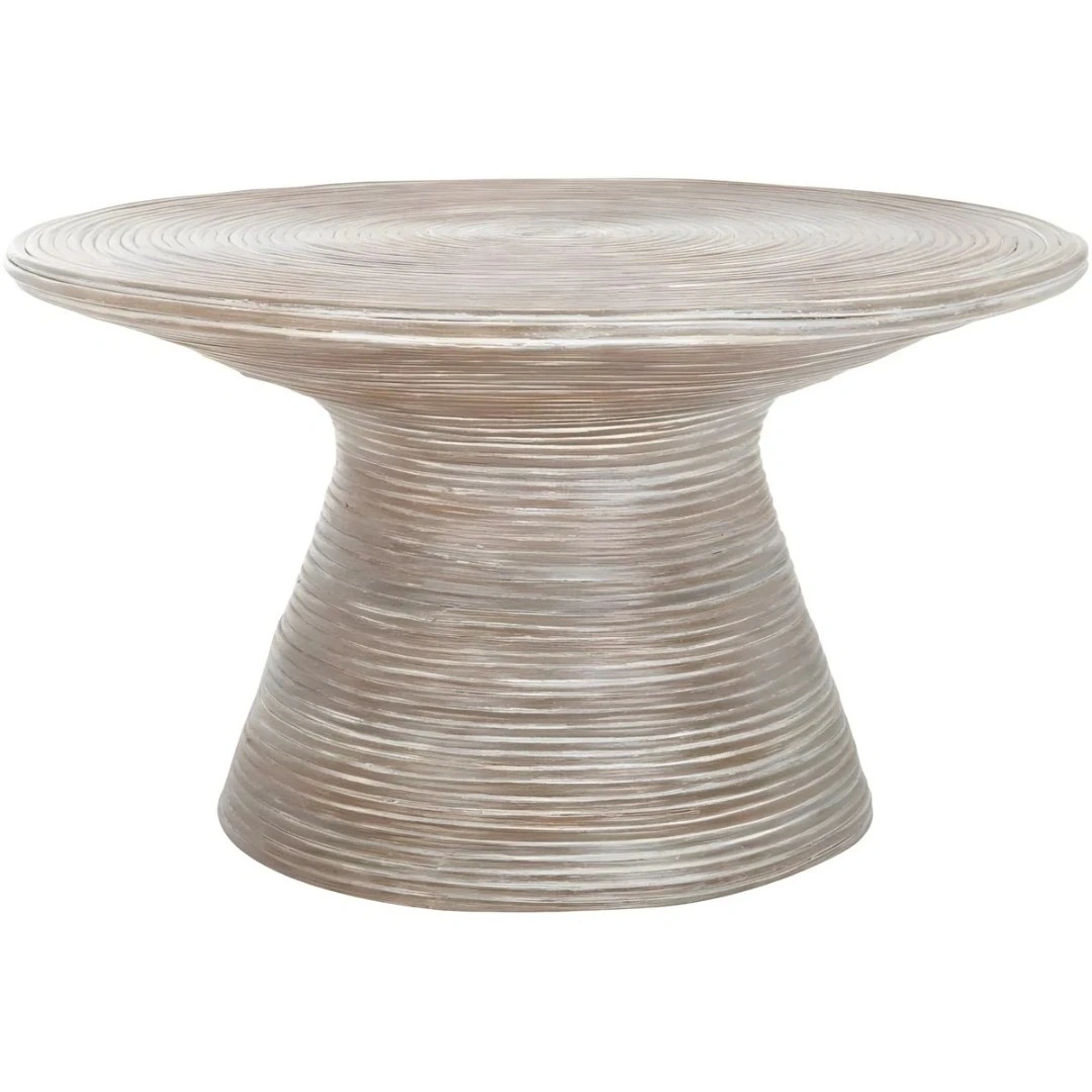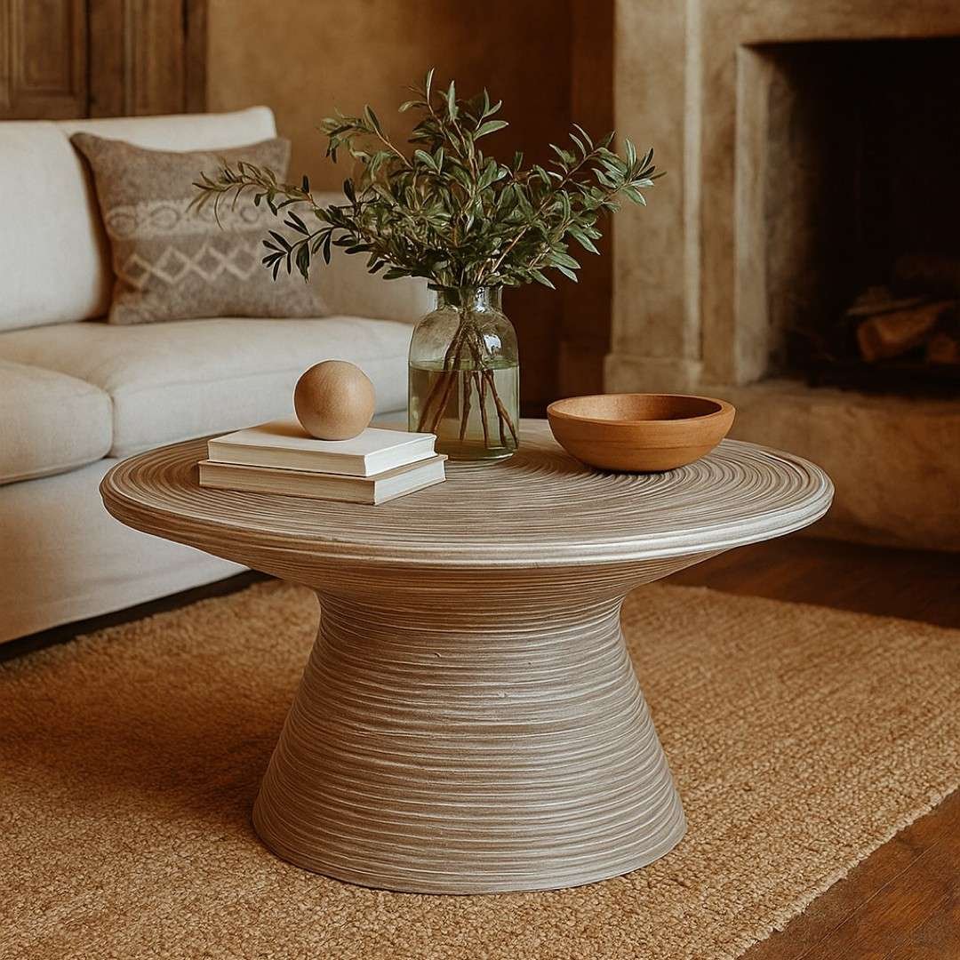Centrio Handcrafted Mango Wood Modern Style Coffee Table – Round Designer Centerpiece