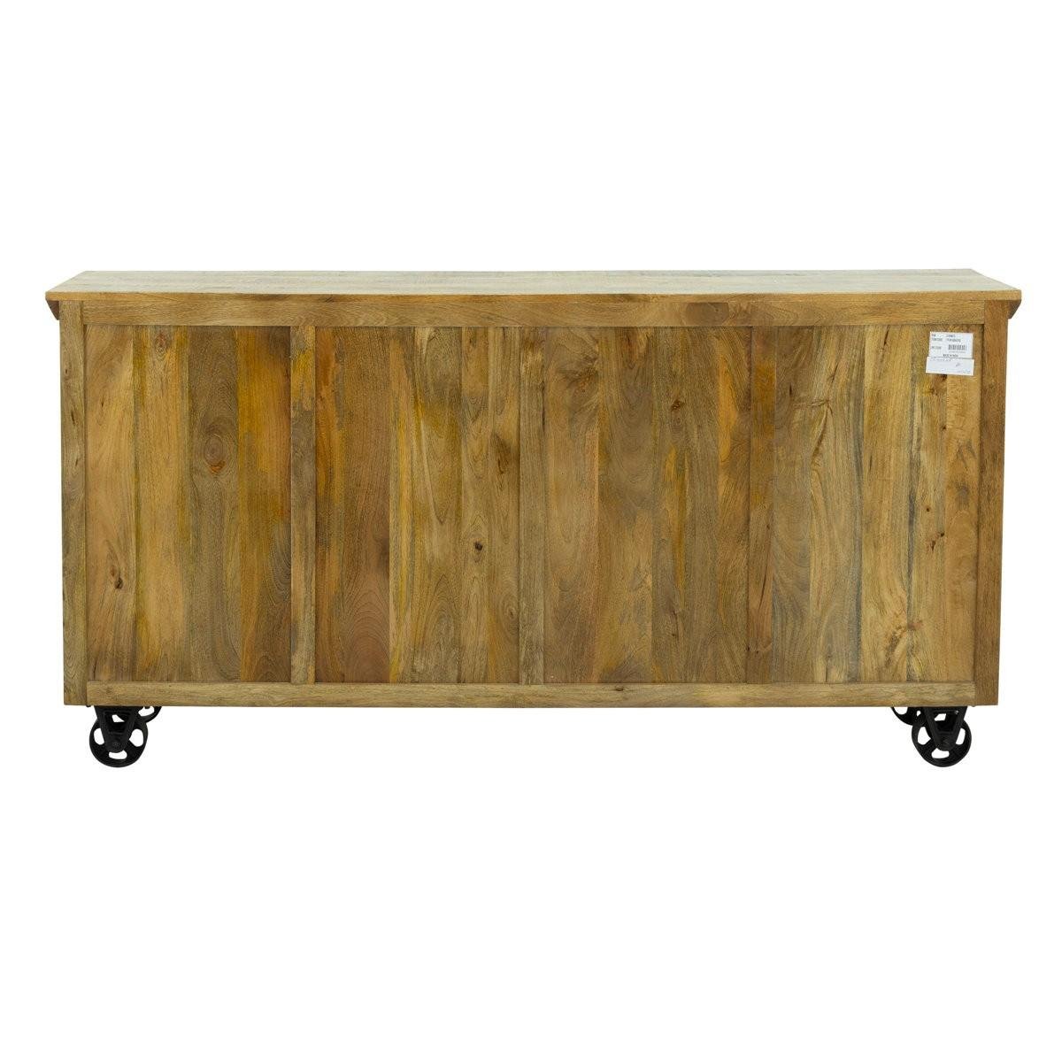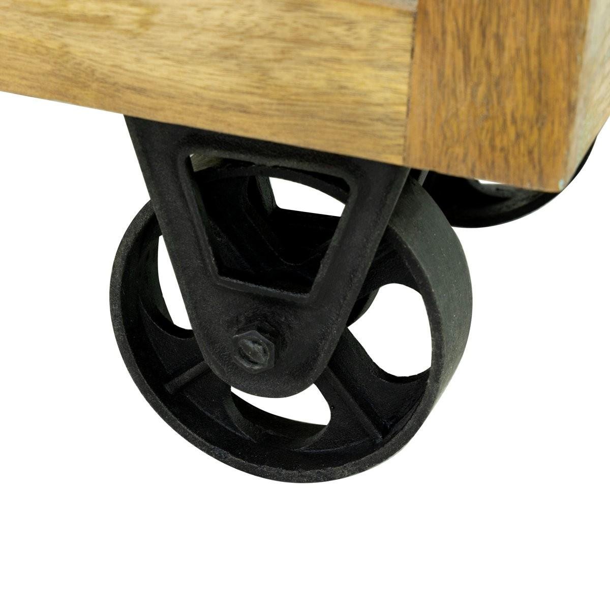 Cast iron wheels add an industrial edge and enhance mobility, making the table both stylish and functional. Perfect for entryways, hallways, living rooms, dining spaces, or studios, the Rustique wooden console table pairs beautifully with rustic, farmhouse, industrial, and eclectic interiors.
