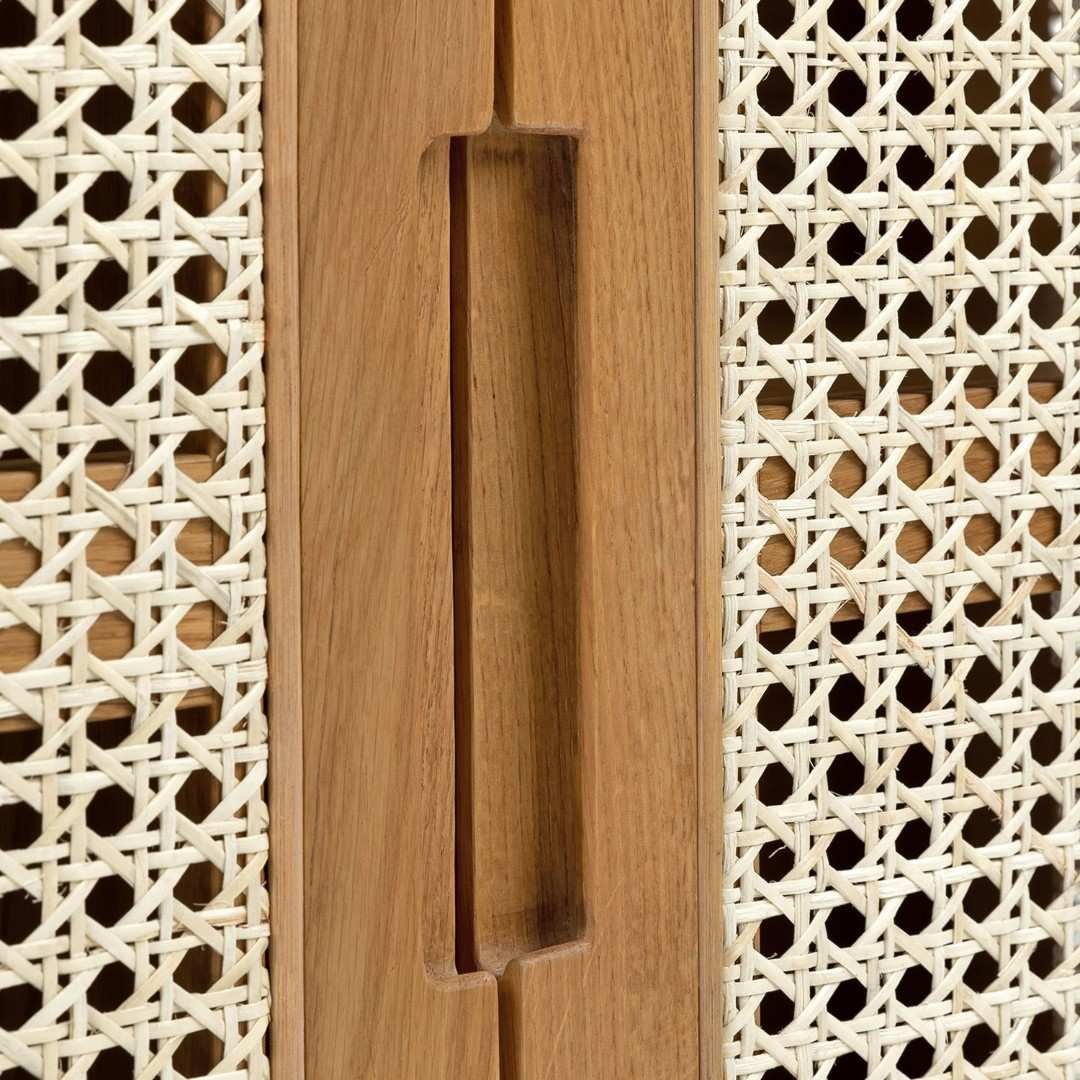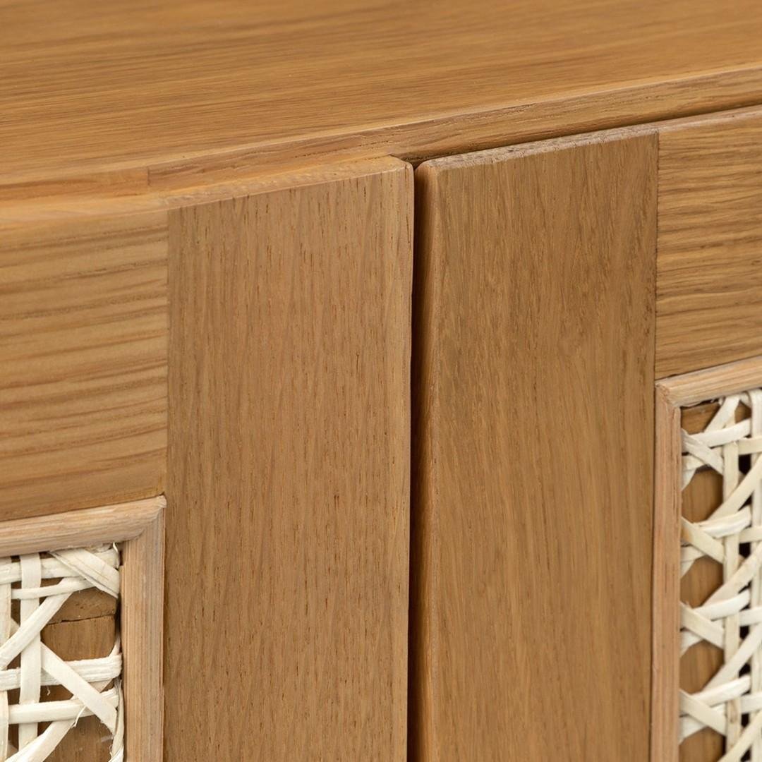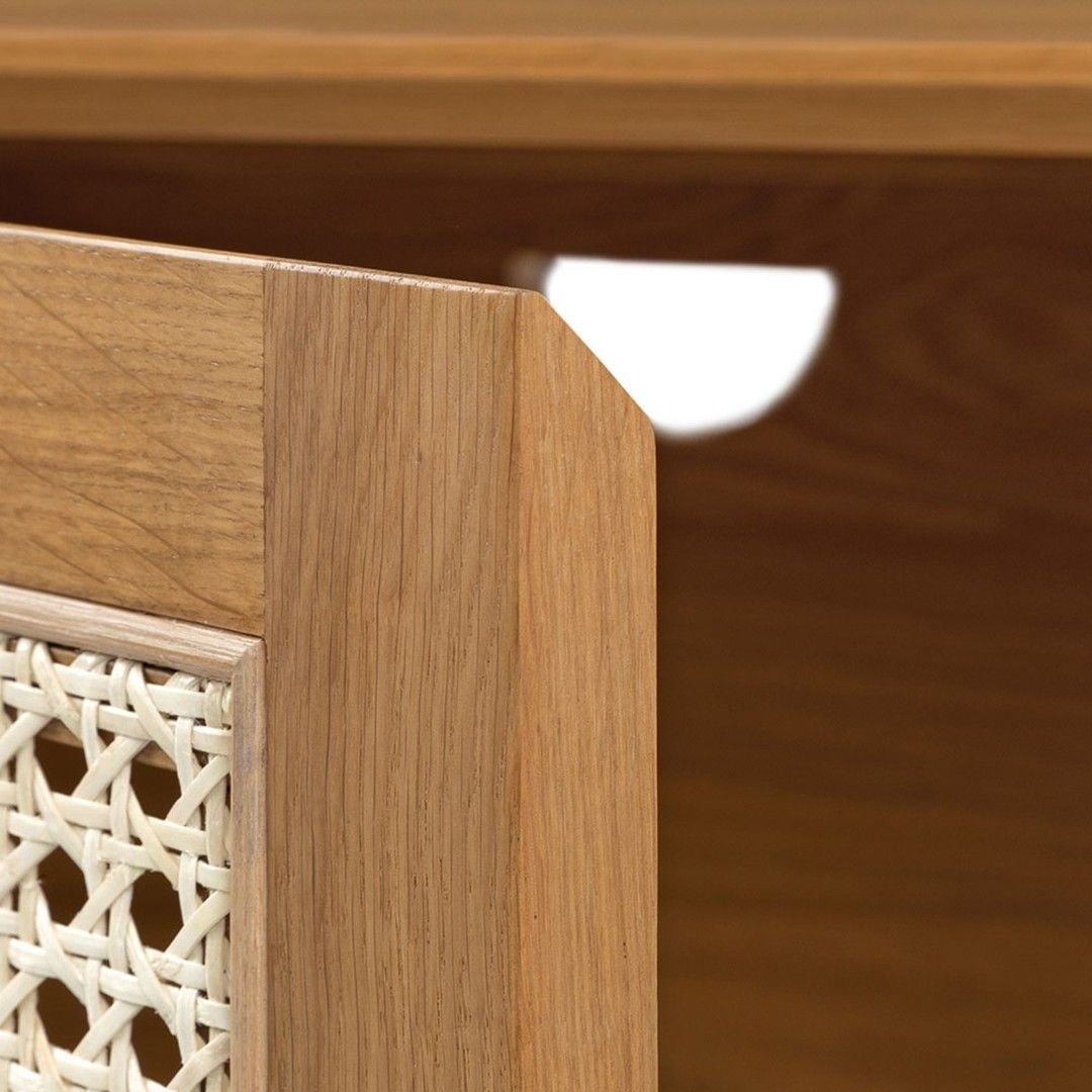 The Grivano console combines handwoven cane panels with smooth wooden framing, creating a balance of organic warmth and refined design. With its generous storage space, you can neatly organize dinnerware, linens, or everyday essentials, while the wide tabletop is ideal for displaying décor accents, plants, or a table lamp to elevate your home styling.