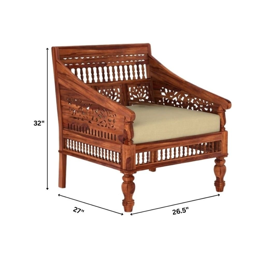 Rajwada Handcarved Wooden Sofa Set in Solid Sheesham Wood (Natural Finish)- Wooden Slice