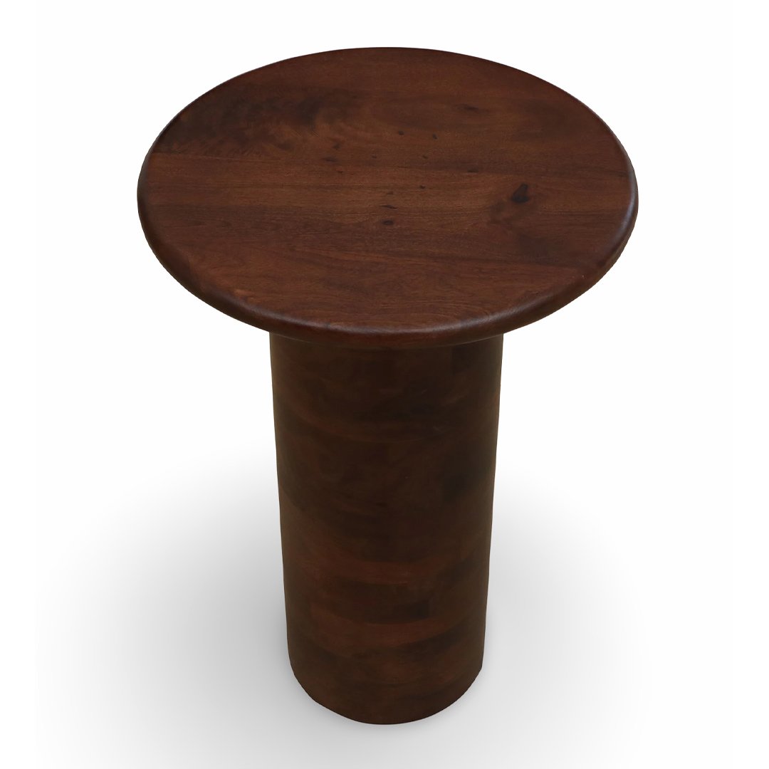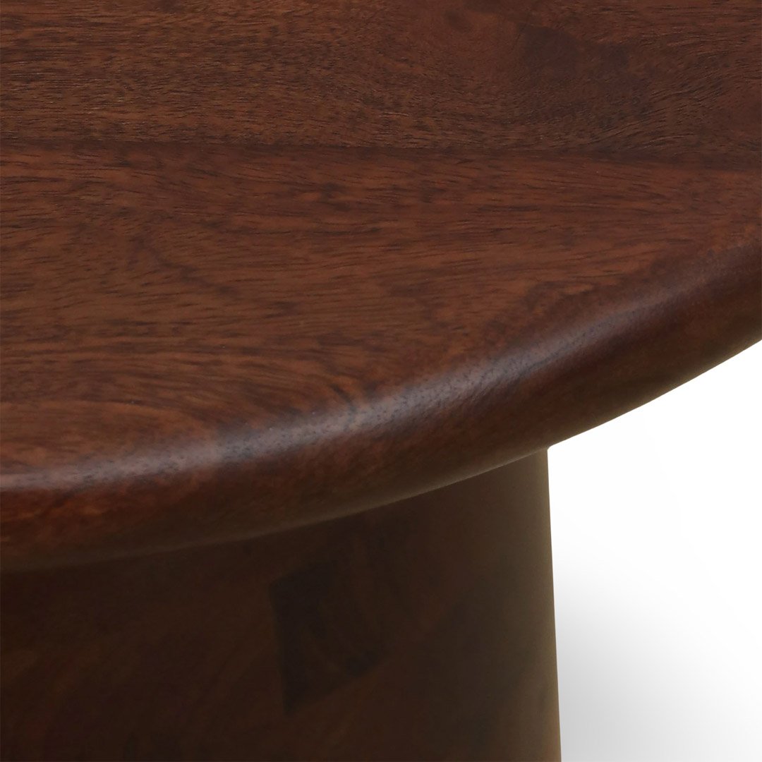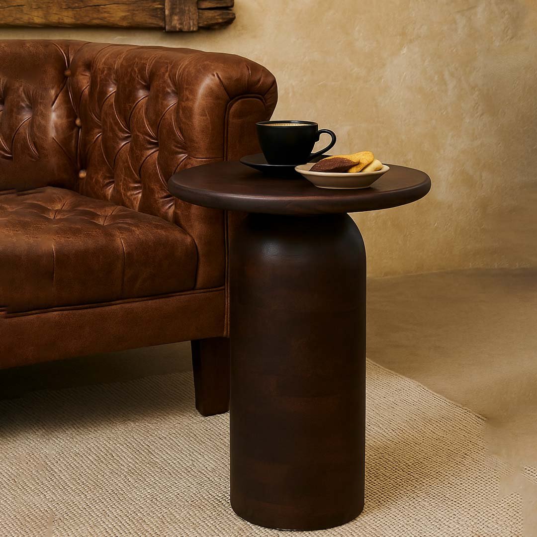 Hand-turned from premium-grade Sheesham wood, Kintra showcases the natural beauty of wood grains, making each piece visually unique. The flat round tabletop rests gracefully atop a curved, pillar-style base — offering both stability and sculptural charm. Its walnut finish adds warmth and richness, making it perfect for modern, contemporary, or rustic spaces.