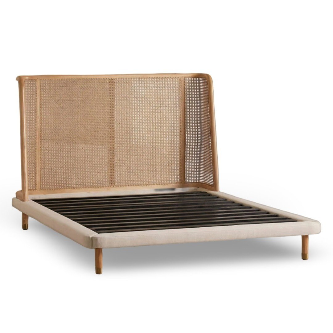 Linea Solid Wood Cane Bed with Handwoven Cane Headboard- Wooden Slice