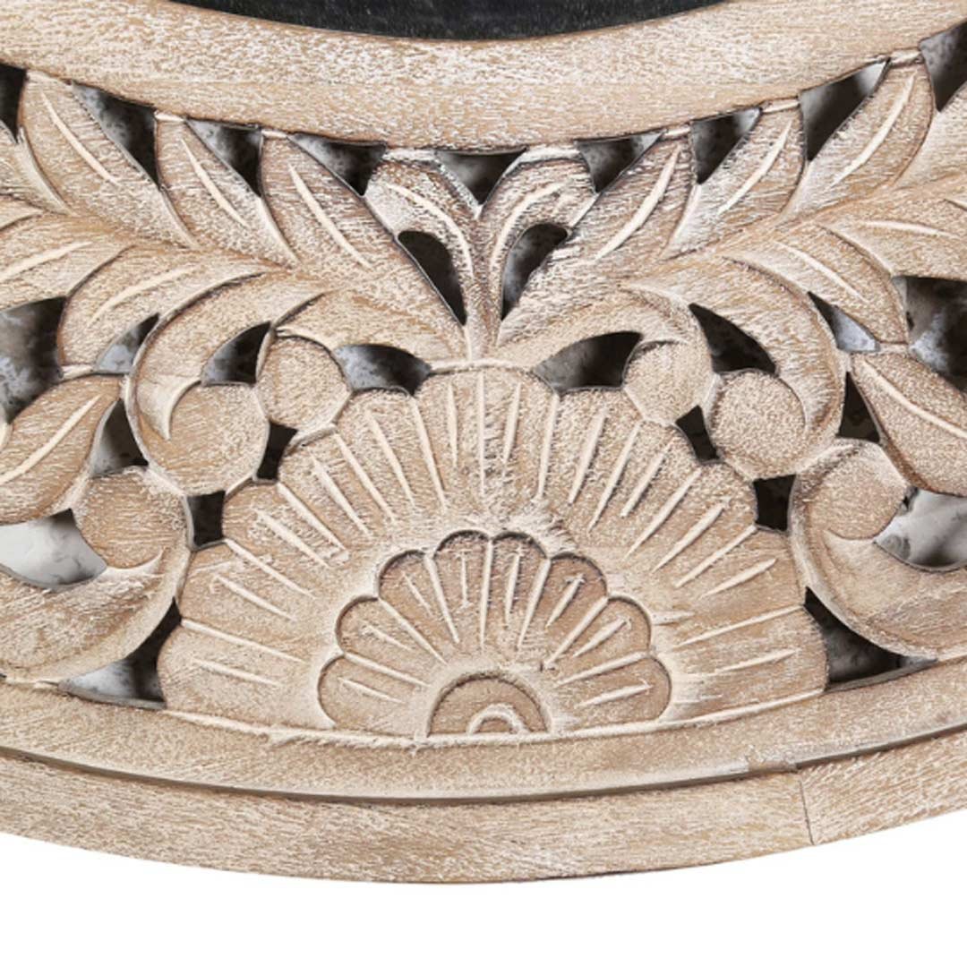 Bring warmth and elegance to your home with the Luminara handcrafted wooden round mirror. Pair it with our solid wood furniture or explore more decorative handcarved mirrors to create a cohesive interior story.