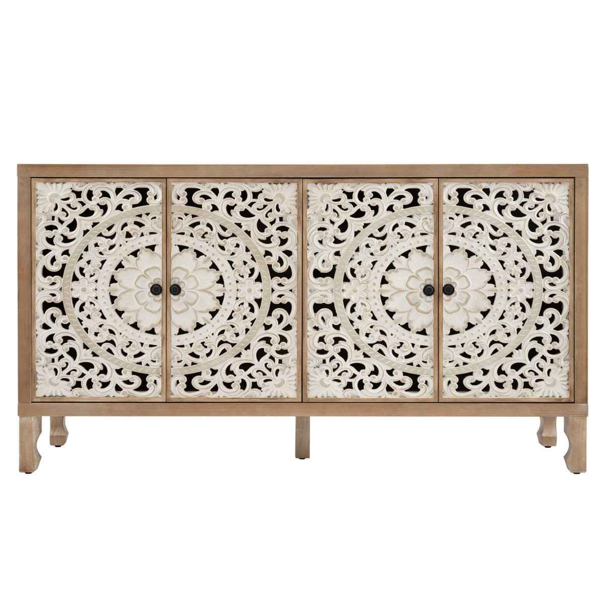Expert artisans hand-carve each door from solid sheesham wood, creating intricate floral and circular motifs that add depth and character. The natural grain of sheesham wood enhances the warmth of the piece while ensuring exceptional durability and long-lasting strength.