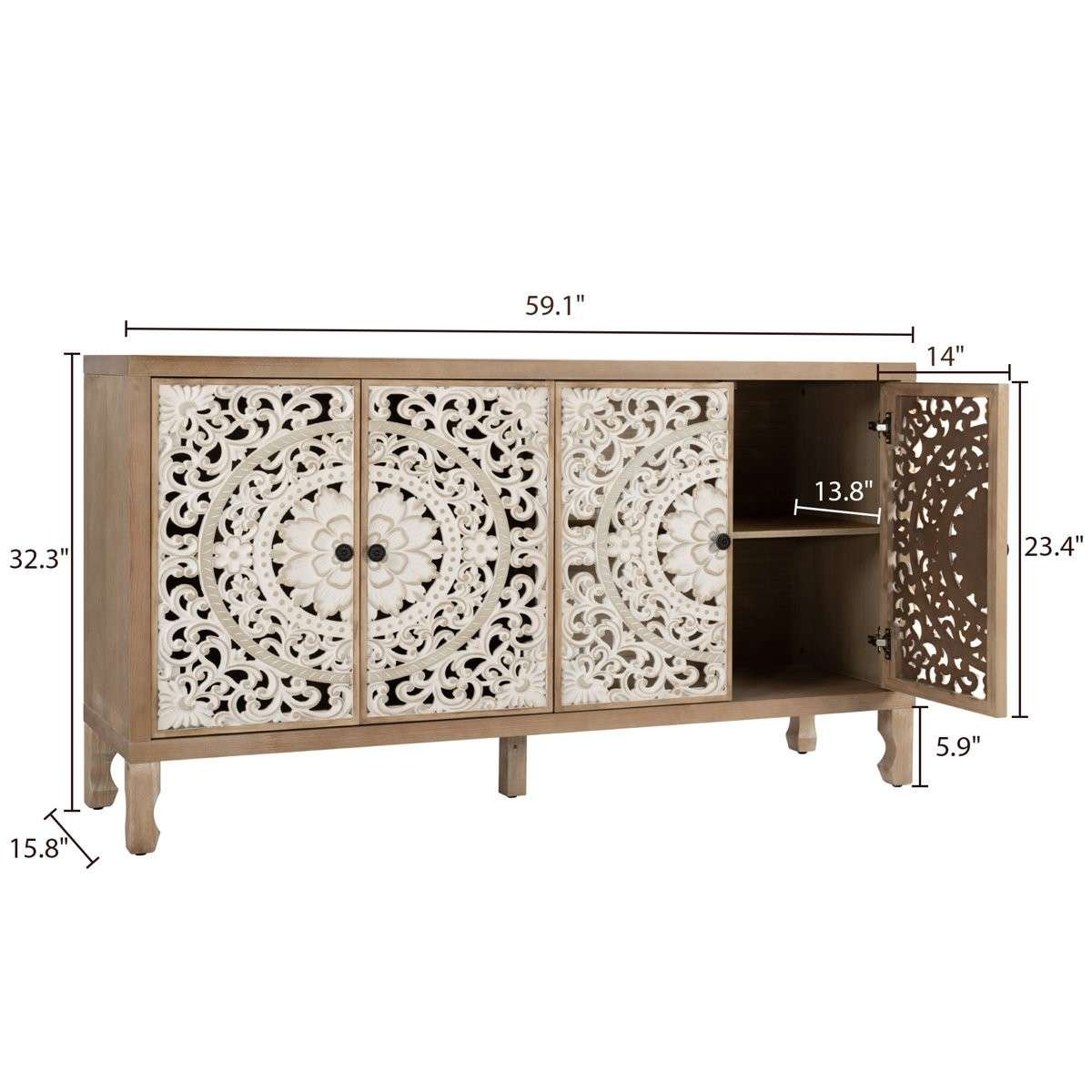 Width: 59.1 inches, Height: 32.3 inches, Depth: 15.8 inches, Inner Shelf Depth: 13.8 inches, Leg Height: 5.9 inches |