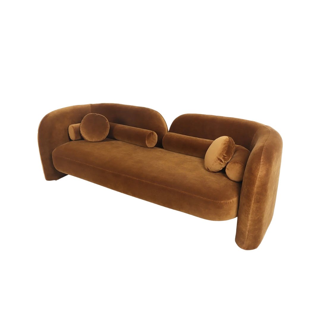 Warm brown/tan velvet/chenille; segmented design, includes bolsters |