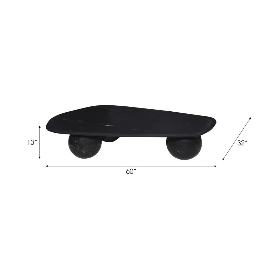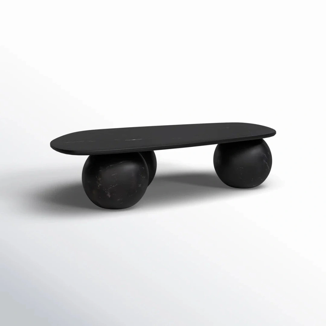 Sleekora Modern Black Coffee Table in Sheesham Wood with Sculptural Sphere Base
