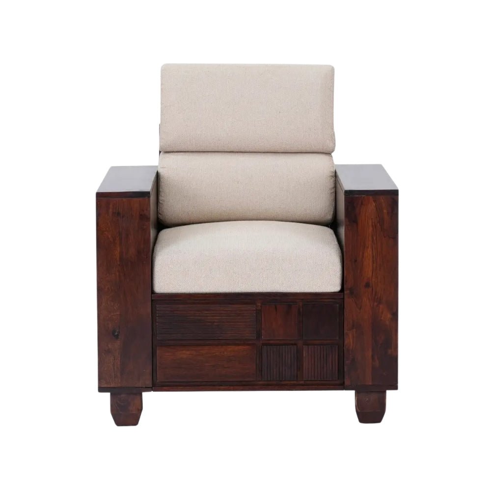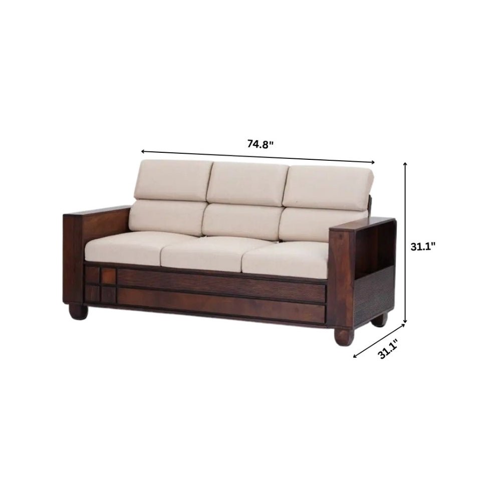 UrbanCraft Modern 3+2 Solid Wood Sofa Set in Sheesham Wood with Premium Upholstery- Wooden Slice
