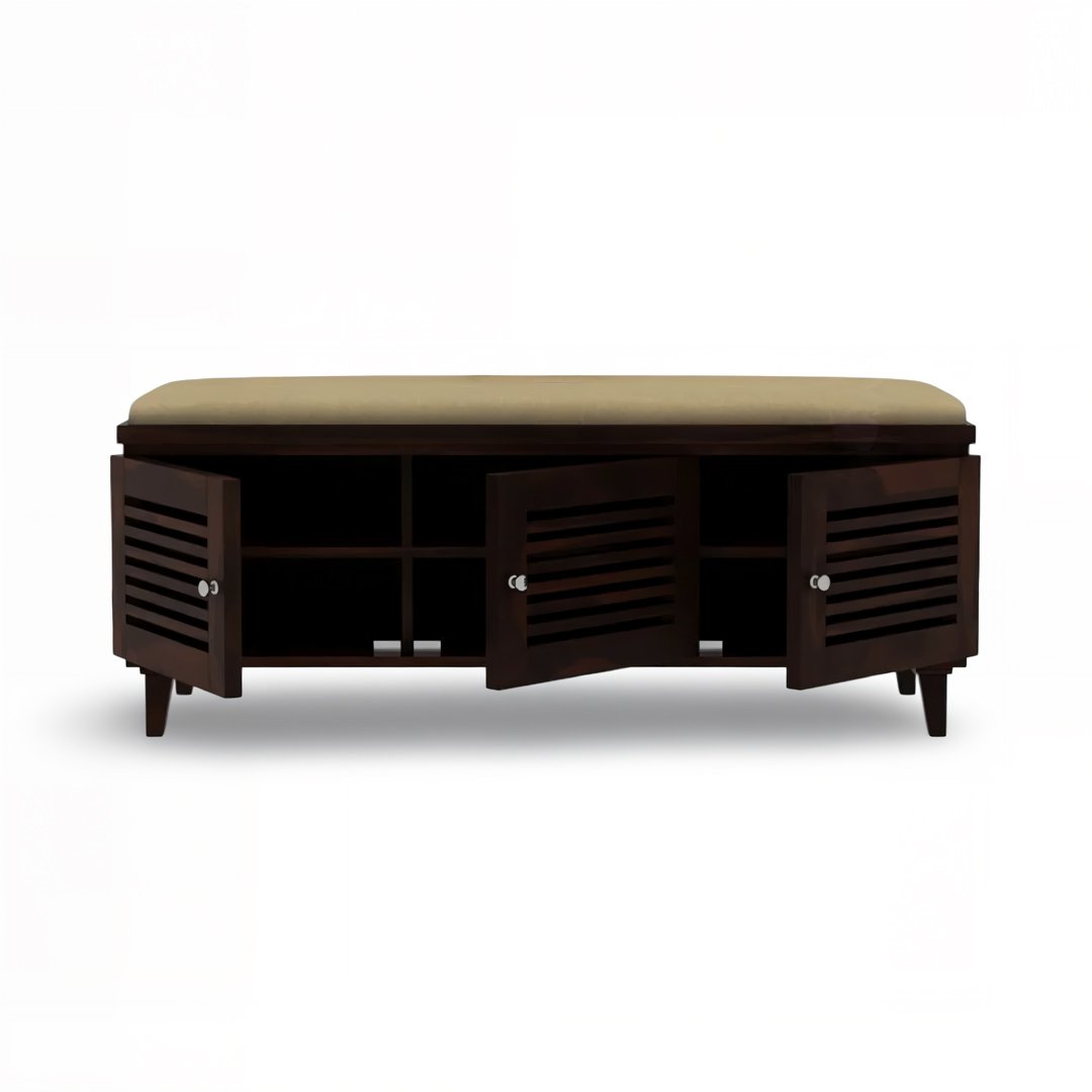 Stowix– Handcrafted Sheesham Wood Shoe Rack Bench | Upholstered Entryway Storage By Wooden Slice