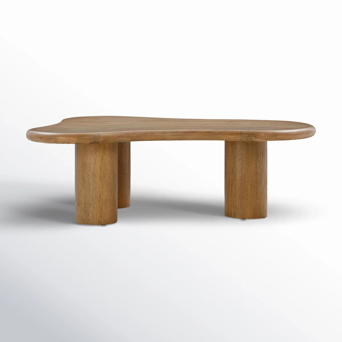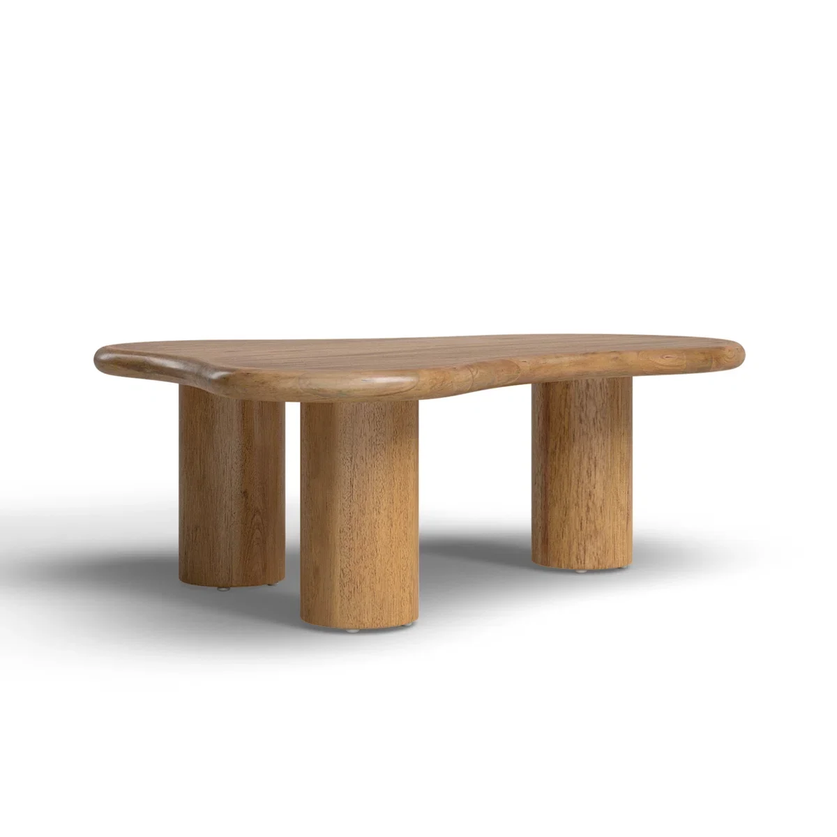 Transform your living space with this luxury handcrafted solid wood coffee table, designed to be the centerpiece of any modern home. The organic free-form tabletop paired with strong cylindrical legs reflects a perfect balance of artistic elegance and sturdy functionality.
