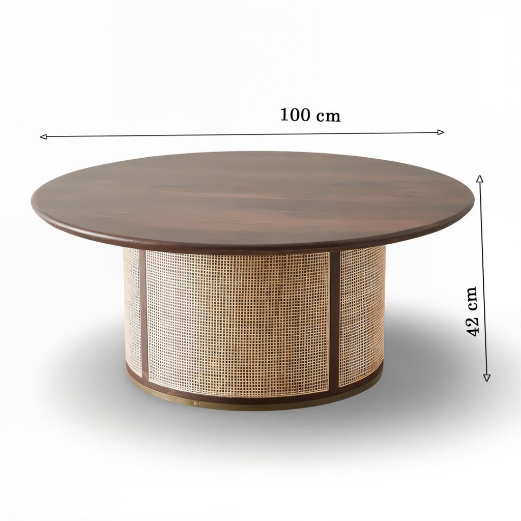 Tavora Handcrafted Sheesham Wood & Cane Round Coffee Table
