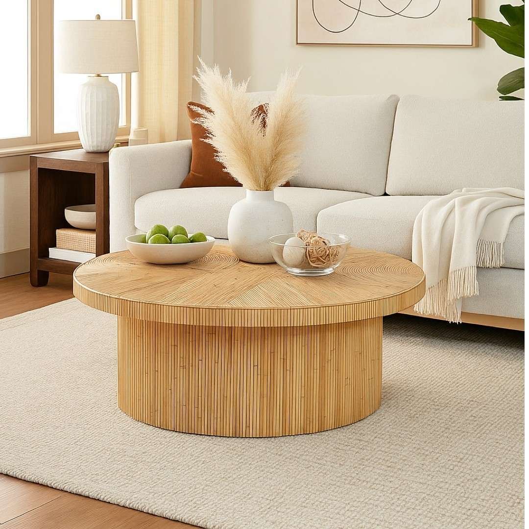 Round coffee table with artisanal handcrafted details |