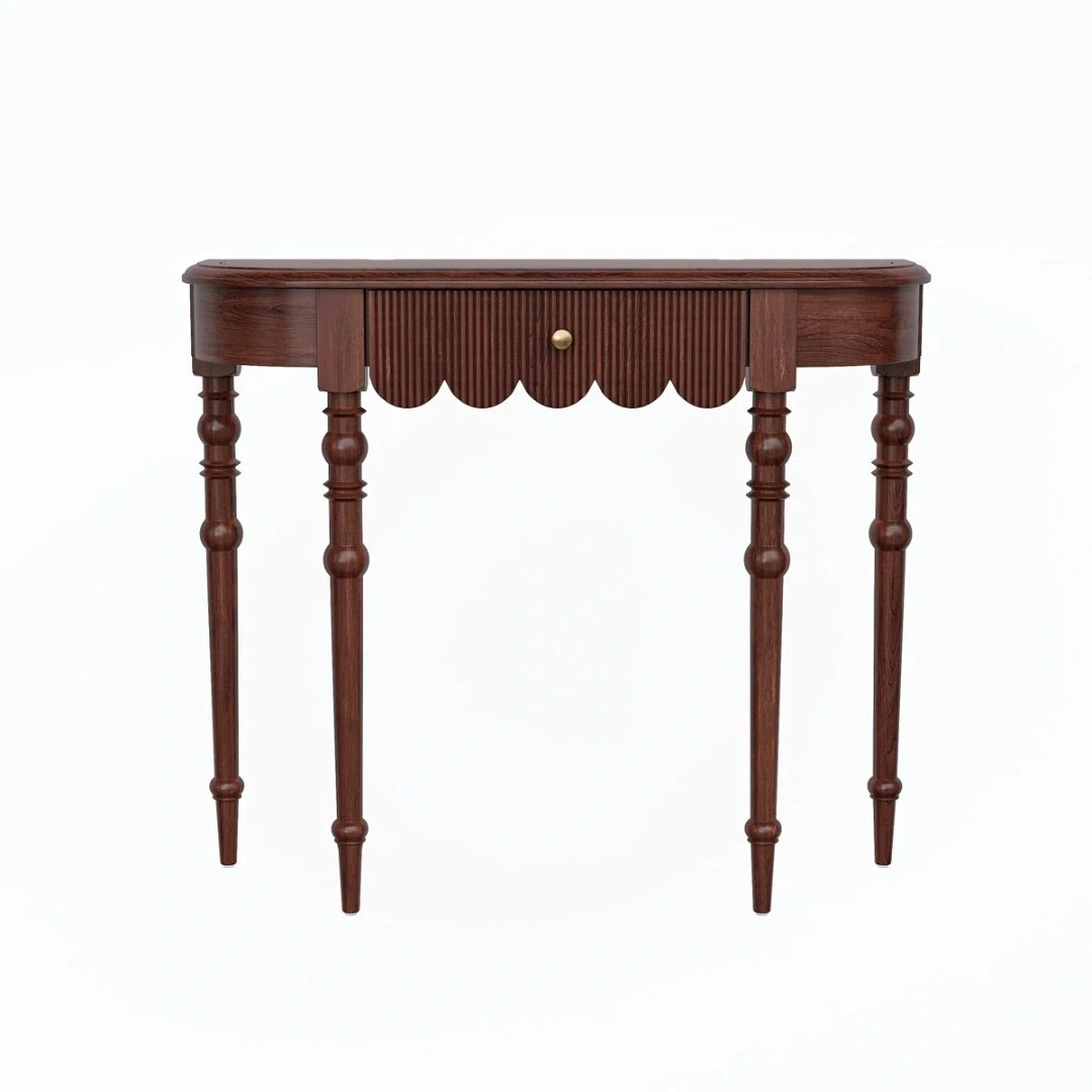 Add timeless charm to your home with the Veyora Handcarved Console Table, beautifully crafted from premium solid mango wood furniture. Its elegant curves, scalloped apron, and hand-turned legs reflect fine craftsmanship that blends traditional artistry with modern style. The rich finish highlights the natural beauty of mango wood, making this piece both functional and decorative.