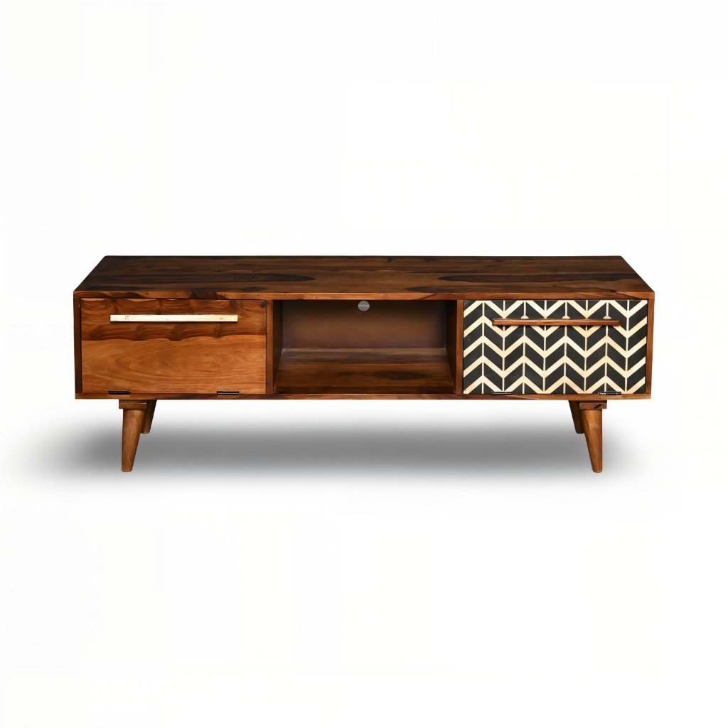 Vistaro – Handcrafted Sheesham Wooden TV Unit with Bone Inlay Detailing