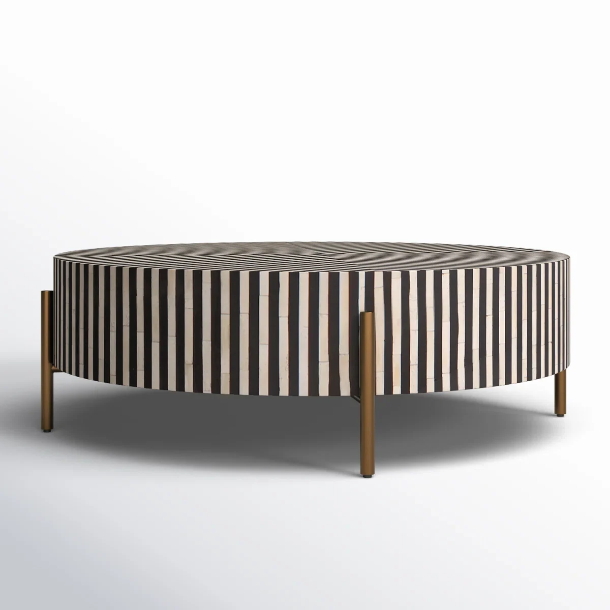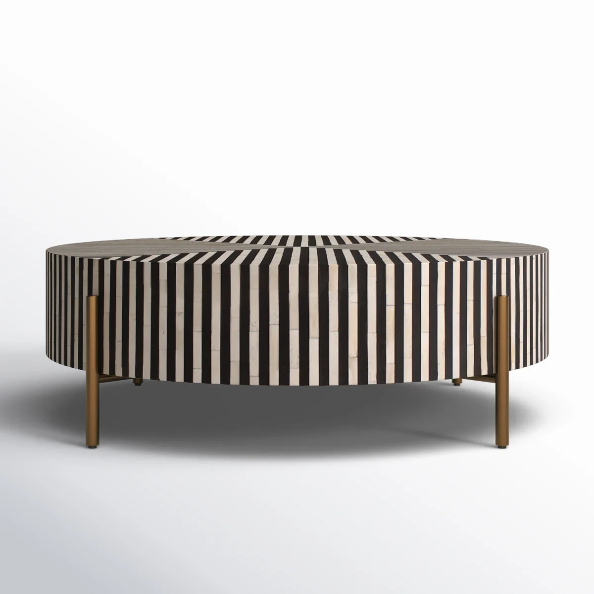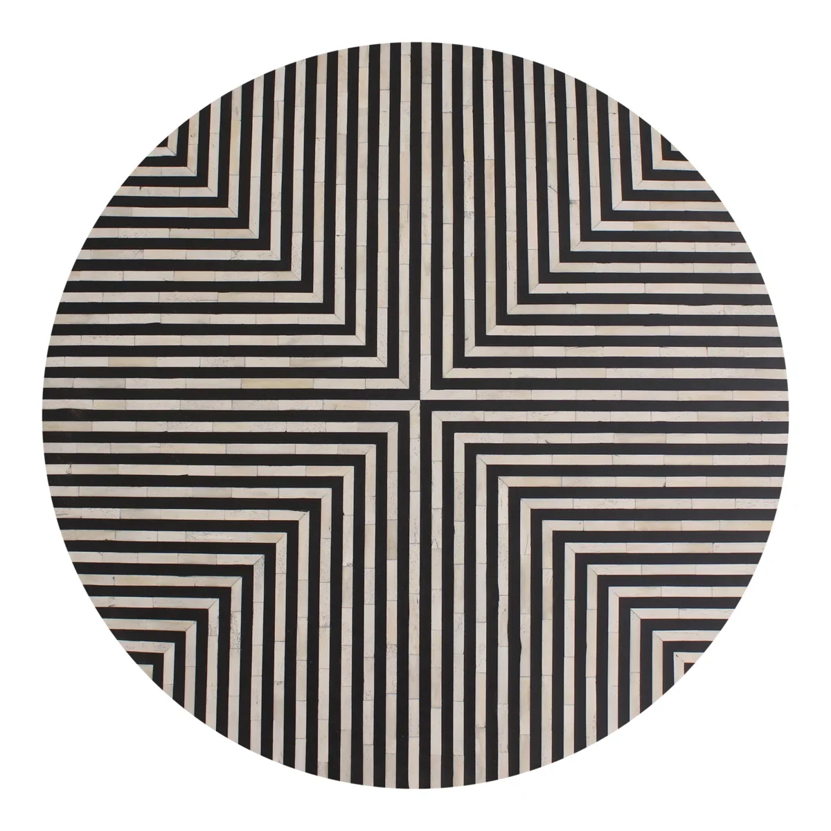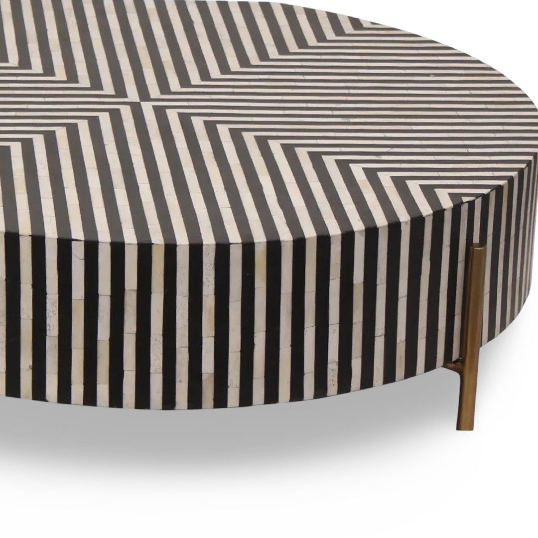 Balance elegance with utility through a stunning designer centre table- vivora Centre Round Table in bone inlay design. Handcrafted by skilled artisans, this designer table features a striking black and white striped pattern that makes it an eye-catching centerpiece. Its round silhouette paired with contemporary legs ensures stability while adding a touch of modern elegance to your décor. Perfect for living rooms, lounges, or premium interiors, this table beautifully blends functionality, durability, and timeless design.